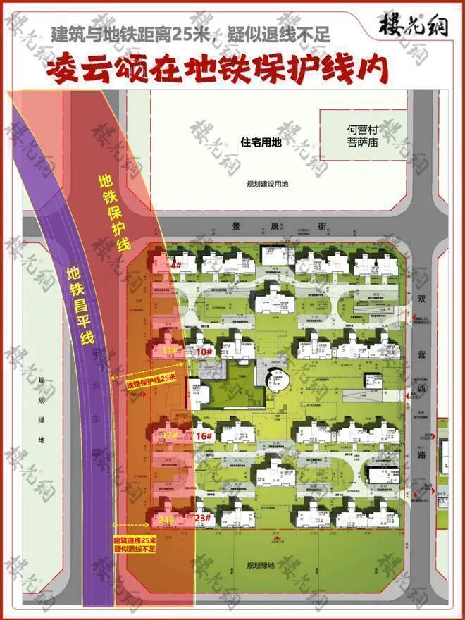 这意味着,凌云颂的4#、10#、11#、16#、17#、23#和23#都在地铁保护线以内。✅✅北京龙湖恩祥·凌雲颂售楼处电话: