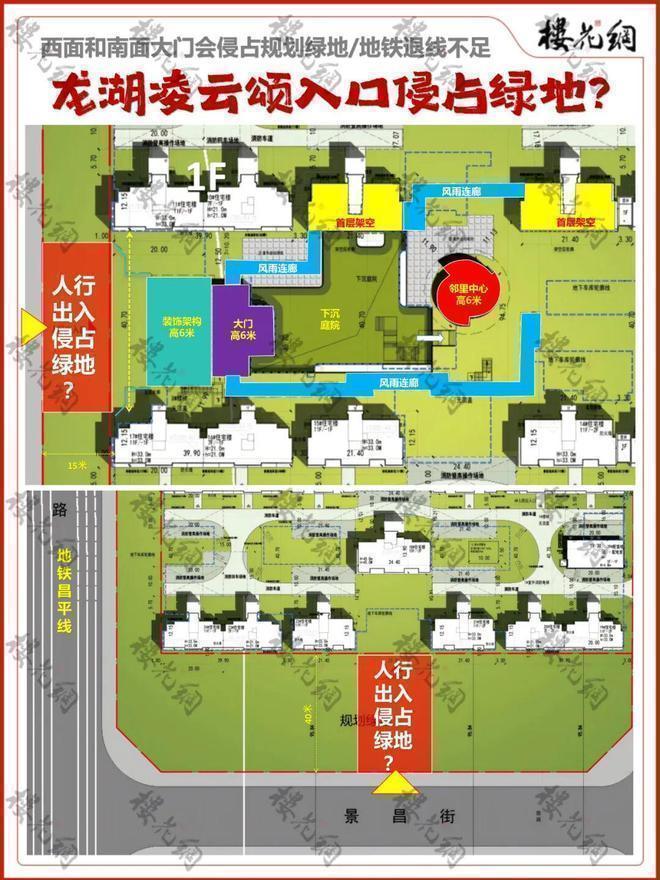 凌云颂的西大门,宽约40米,所占绿地是多少?南大门21#和22#两栋住宅距离25.95米,这是不是占用绿地的宽度?