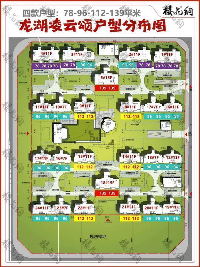 凌云阁有580套房子,分78平米、96平米、112平米和139平米四款户型。